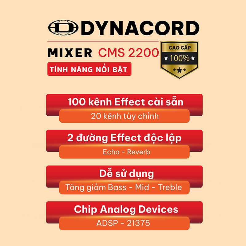 Bàn Mixer Dynacord CMS 2200 CAO CẤP được sản xuất tại nhà máy Trung Quốc và được Khang Phú Đạt Audio nhập khẩu, phân phối tại thị trường Việt Nam. Dòng bàn trộn analog sở hữu số line khủng – 22 line cùng với cổng USB đa dụng, độ ổn định cao cho phép bạn sử dụng với nhiều mục đích khác nhau như sự kiện, đám cưới, sân khấu,….