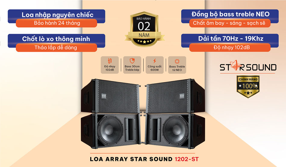 Loa Array Star Sound 1202-ST là model loa line array mới nhất đến từ thương hiệu Star Sound, được phát triển để đáp ứng nhu cầu trình diễn âm thanh chuyên nghiệp trong những không gian rộng lớn như sân khấu ngoài trời, hội trường, sự kiện live show… Với thiết kế hiện đại, cấu hình mạnh mẽ và hiệu suất âm thanh vượt trội, đây là lựa chọn lý tưởng cho các bác bầu show sự kiện.