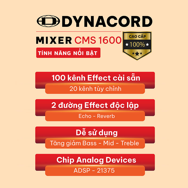 CMS 1600 cao cấp là một trong những thiết bị Mixer bán chạy nhất tại Khang Phú Đạt Audio. Cùng với lời hứa thương hiệu “Luôn đồng hành cùng khách hàng”, quý khách có thể an tâm về chất lượng sản phẩm, các chính sách trước và sau bán cùng kỹ thuật setup tốt nhất. Nếu chưa an tâm bạn có thể trải nghiệm trực tiếp sản phẩm ngay tại Showroom của chúng tôi. Và đặc biệt với những khách hàng ở xa Khang Phú Đạt Audio sẽ test kỹ lưỡng sản phẩm setup sẵn 3 chế độ Effect hay nhất sử dụng cho các mục đích khác nhau theo yêu cầu người dùng.